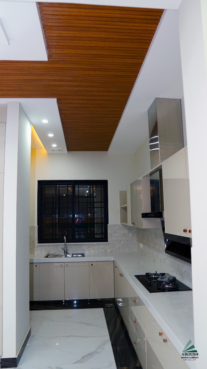 Aroush Works specializes in designing and constructing custom kitchen interiors that balance functionality with modern aesthetics. Each kitchen layout is crafted to optimize space, featuring sleek cabinetry, high-quality materials, and innovative storage solutions that cater to a variety of cooking and dining needs. Our designs emphasize durability and style, with a focus on creating an inviting environment where families can gather, cook, and enjoy meals together. With options for open layouts, island counters, and integrated smart appliances, Aroush Works delivers kitchens that are as efficient as they are elegant, tailored to fit each client’s lifestyle and preferences.